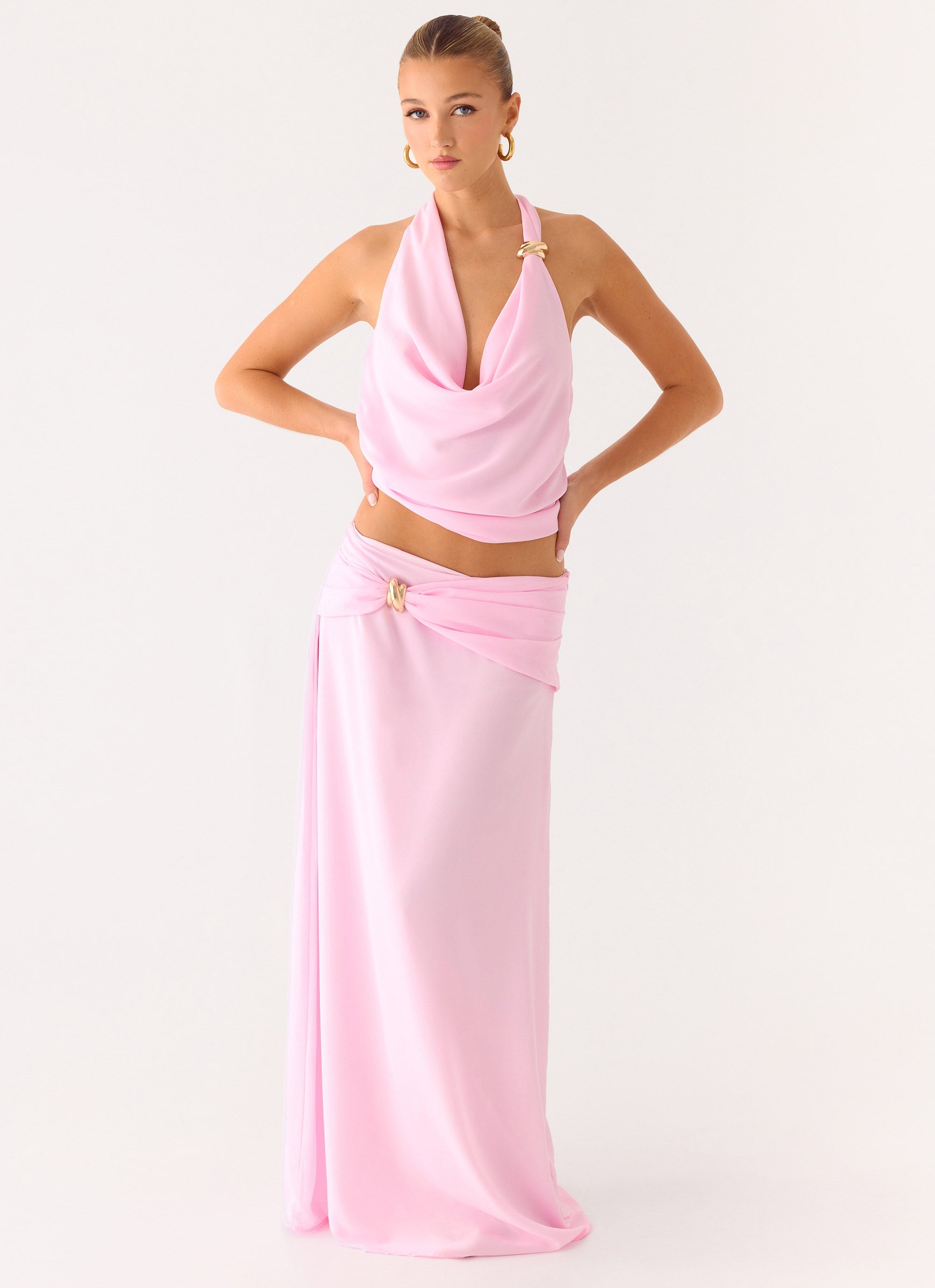 The Anuhea Maxi Skirt brings effortless glamour with a low-rise fit and sleek silhouette. Featuring a statement front metal detail and delicate waistband detailing. it's designed for warm nights and spotlight moments. Fully lined for comfort with a clean invisible zip closure.