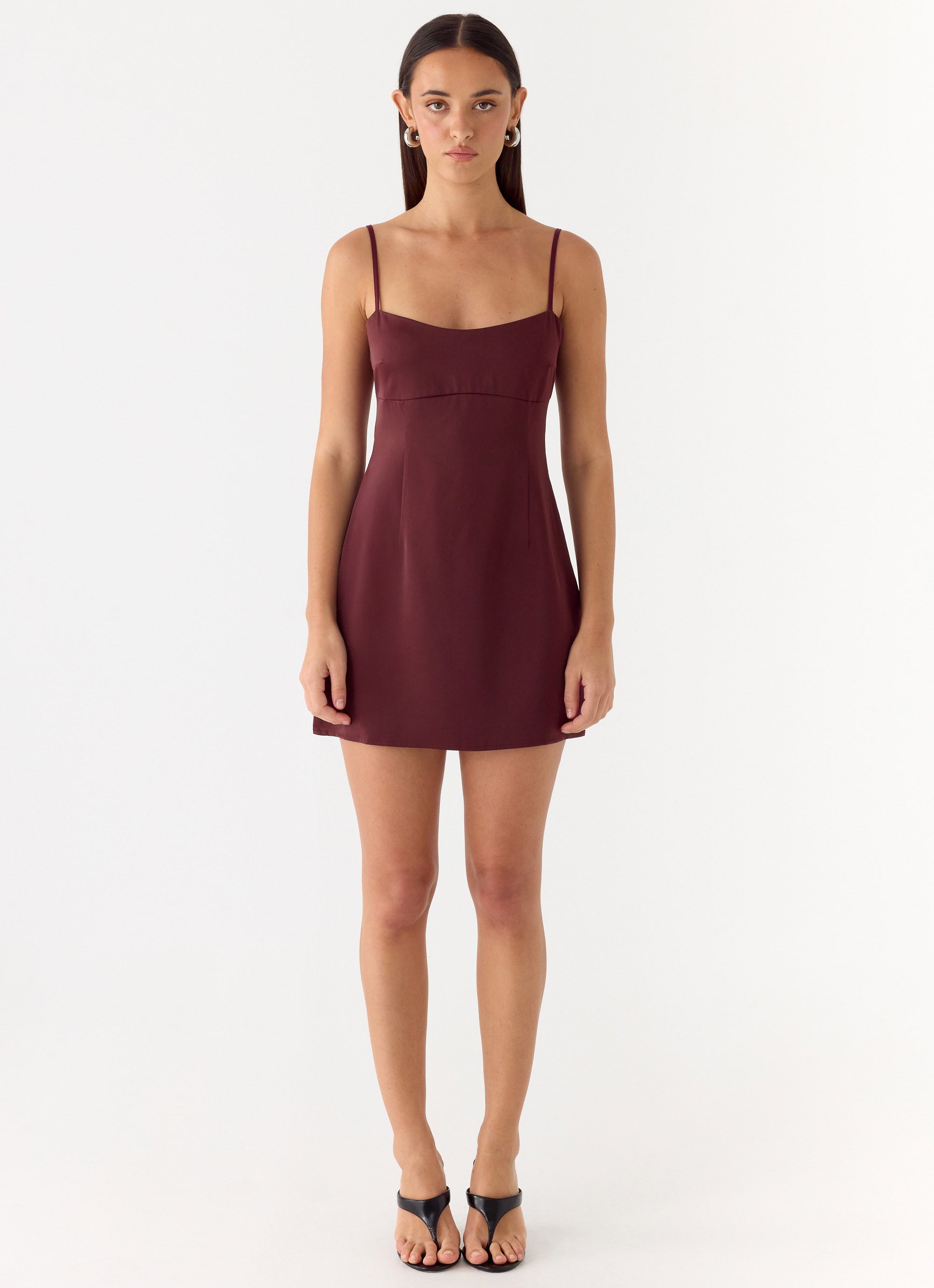 The Clementine Mini Dress is made for sun-kissed evenings and city lights. With thin adjustable straps. a low back. and a fully lined satin finish. this mini dress creates a flattering. figure-hugging silhouette perfect for beach-to-bar moments.