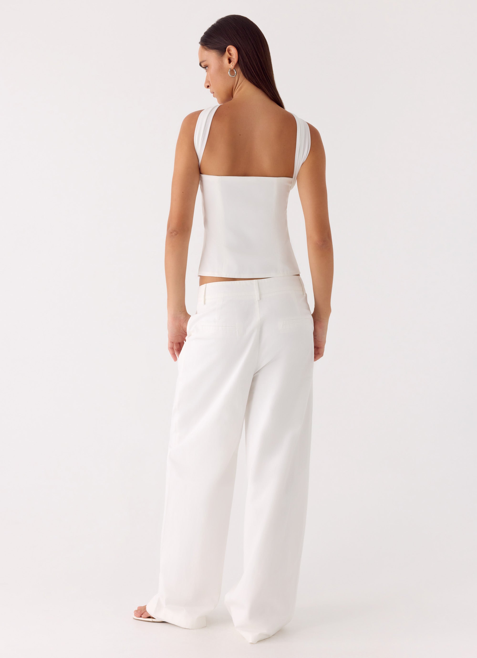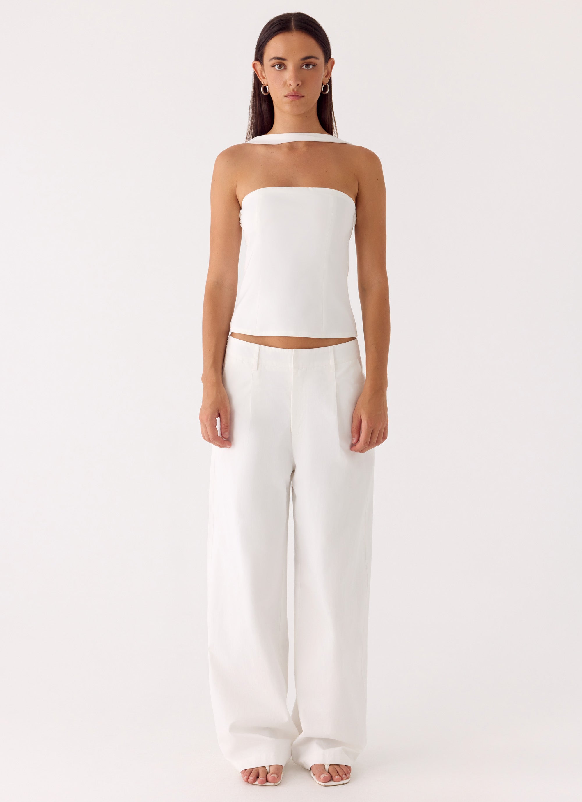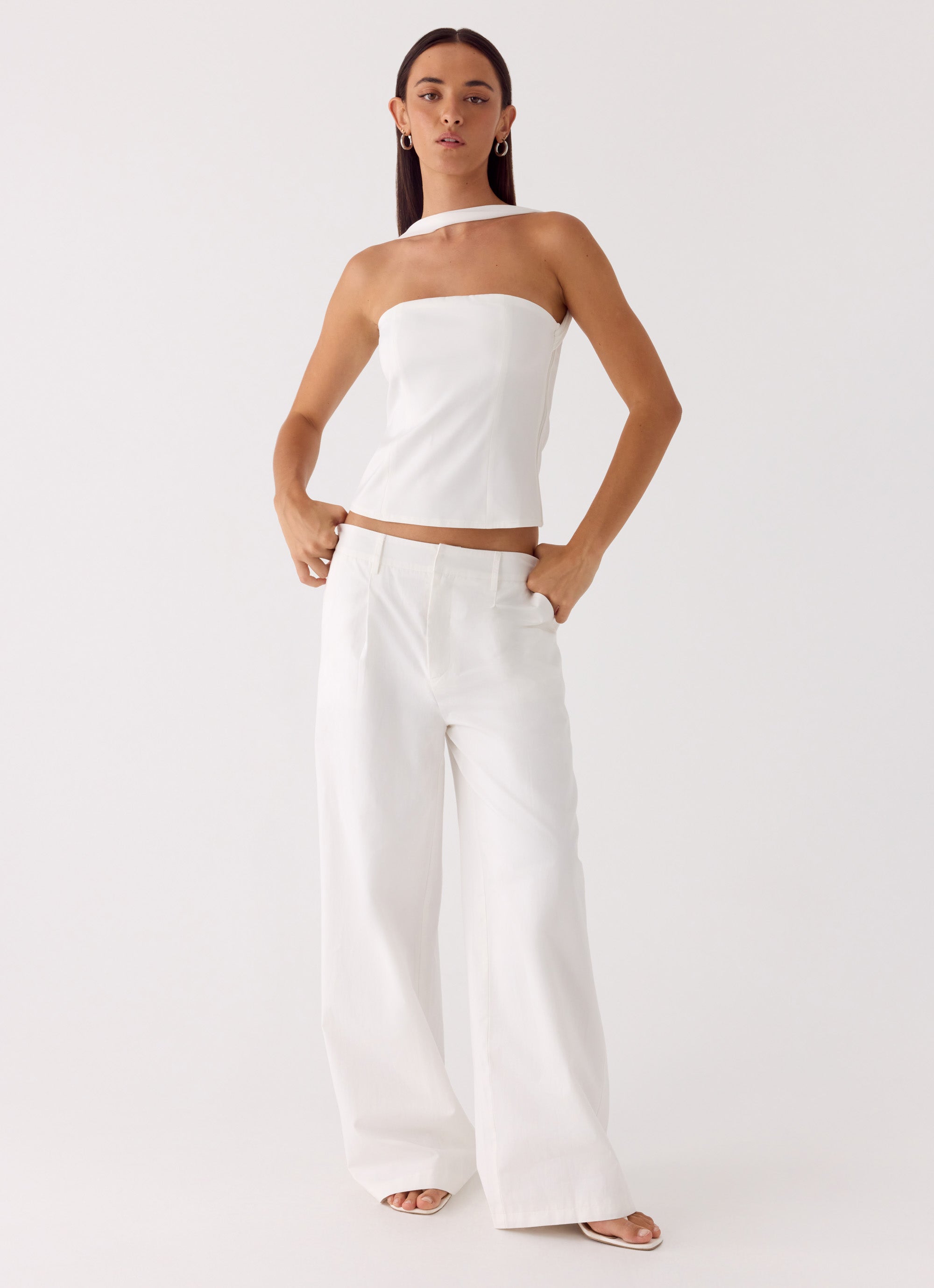 The Emilia Pant is made for sunlit days that drift into golden evenings. Featuring a mid-rise waistline and relaxed fit. it skims the silhouette with effortless ease. Belt loops. front pleats. and a hook-and-zipper closure add tailored sophistication. making this pant both polished and editorial-ready.