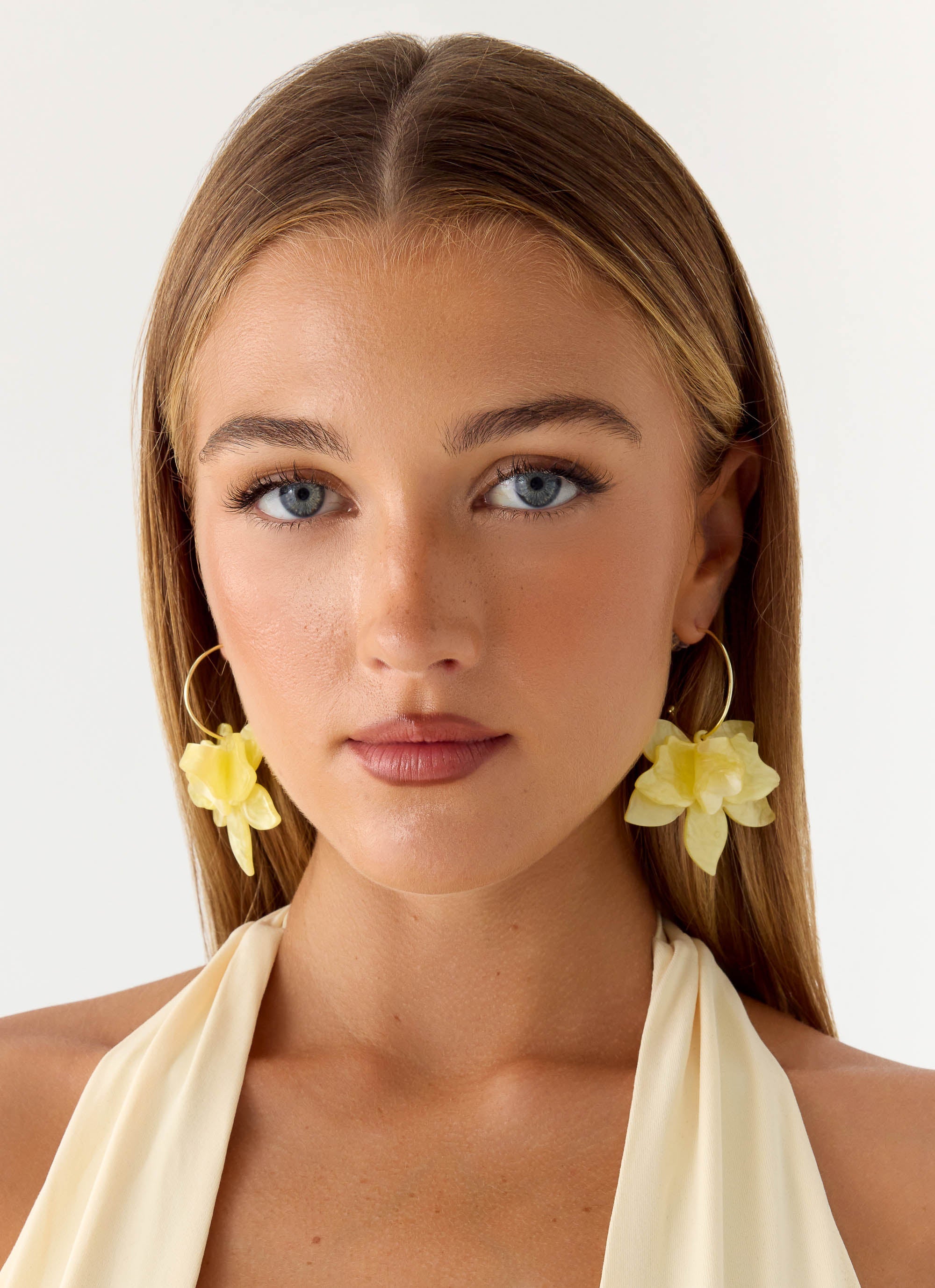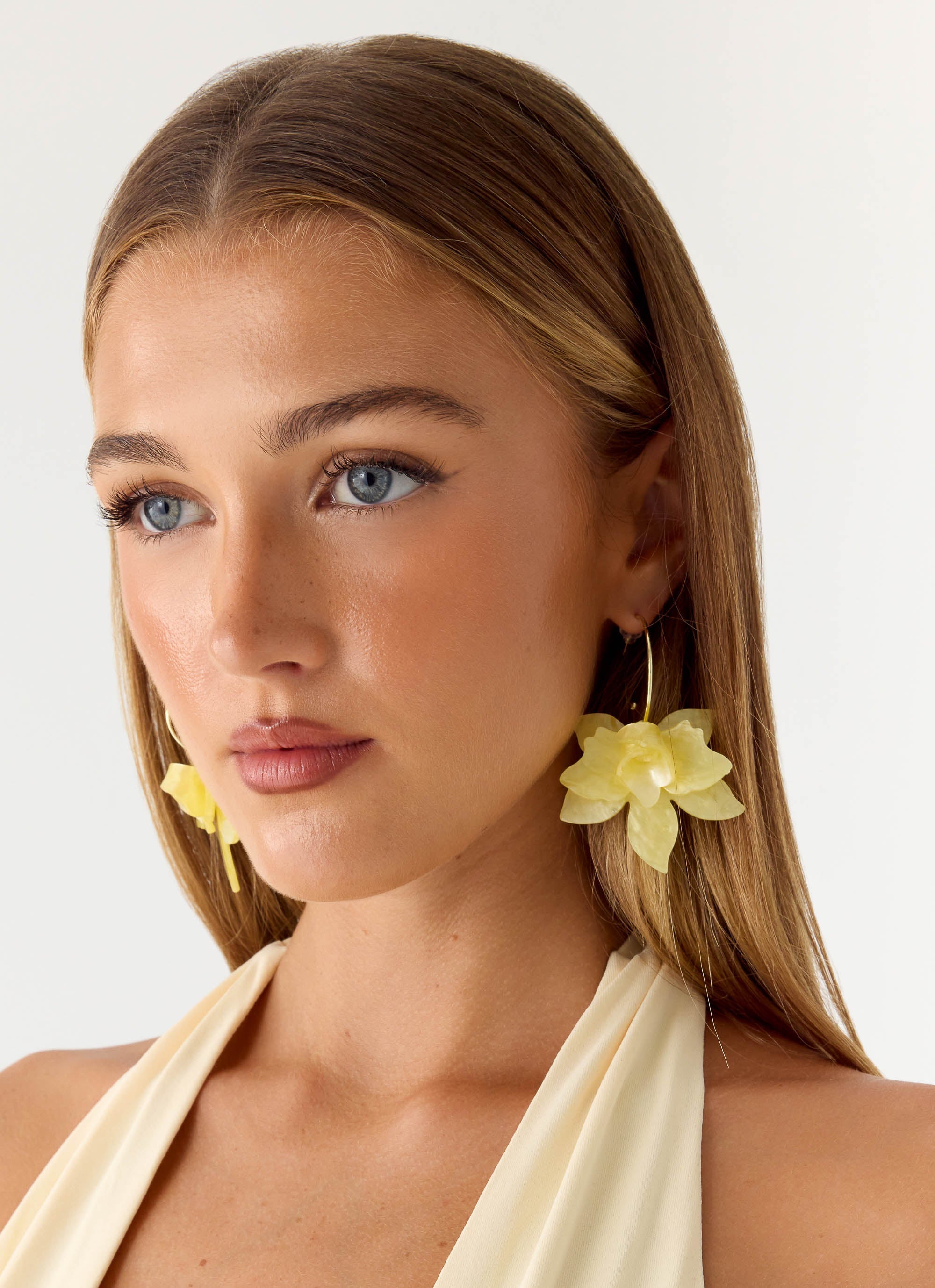 The Frosted Citrus Earrings sway with effortless summer energy. Featuring delicate dangly petals in a floral silhouette. these earrings bring a playful. editorial edge to any evening or golden hour moment. Lightweight and sculptural. they're designed to move with you from sunset to sundown.