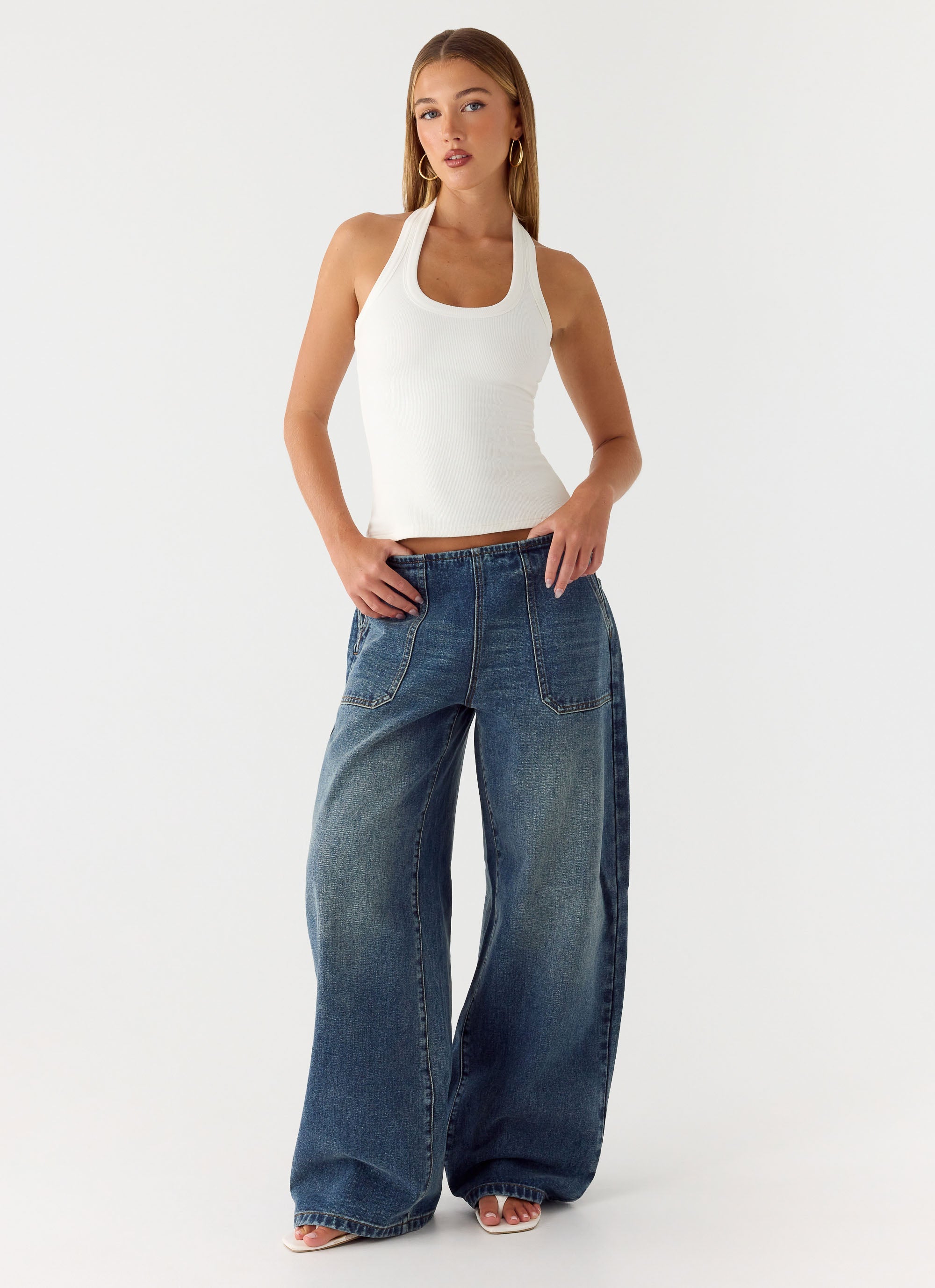 The Seethal Low Rise Washed Denim Jeans are crafted for sun-soaked days that flow into city nights. Featuring a low-rise waist and straight-leg fit. they offer a flattering. easygoing silhouette. Washed for effortless texture. these jeans are finished with functional patch pockets and a side seam zip closure for everyday cool.